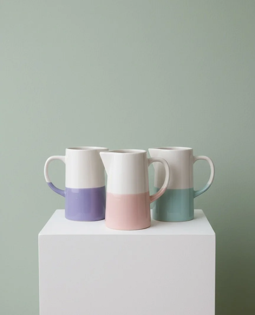 These sweet two-tone ceramic pitchers are the perfect little spring vessel 🤍